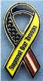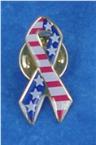 Description: 1-1/4" Red White and Blue Support Our Troops Ribbon Pin: These lapel pins are die